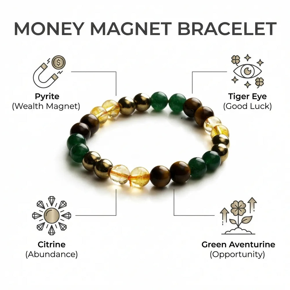 Natural Money Magnet Bracelet - Pyrite, Tiger Eye, Citrine & Aventurine with Certificate