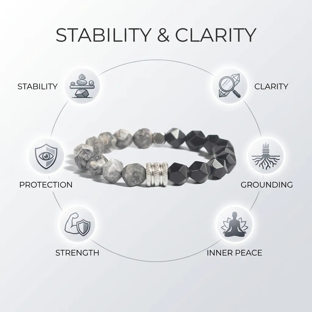 This elegant Map Stone and Obsidian Bracelet is a powerful combination for those seeking emotional stability, protection, and inner peace. Map Stone, known for its earthy appearance, symbolizes life’s journey and grounded growth, while Obsidian is the "Stone of Protection," helping to shield against negativity and clear emotional blockages. Together, they create a calming, supportive energy perfect for daily wear.