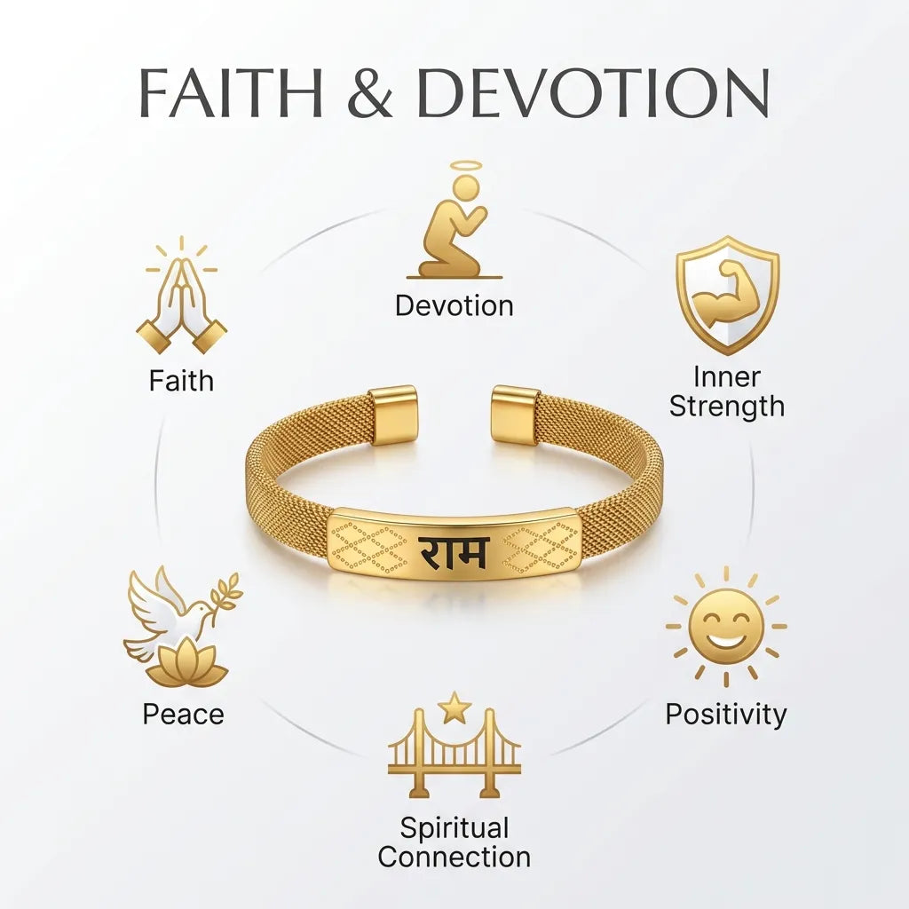 This Ram Kada Bracelet is made with IGP gold plating on stainless steel, giving it a bright shine, strong build, and premium finish that stays like new — no matter how rough your day is.