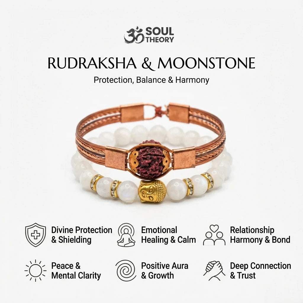 Balance & Protection: Rudraksha & Moonstone Shiv Shakti Couple Combo Set