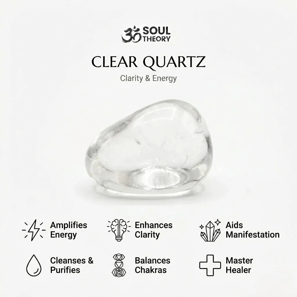 Clear Quartz, known as the "Master Healer" is valued for its clarity and versatility. Wearing a Clear Quartz bracelet promotes mental clarity, enhances energy, and amplifies your intentions.