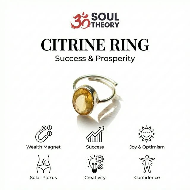 Citrine, known as the "Merchant's Stone" is celebrated for its vibrant golden-yellow hue and energy of abundance. Wearing a Citrine ring attracts wealth, positivity, and enhances personal power, helping you radiate confidence and joy.