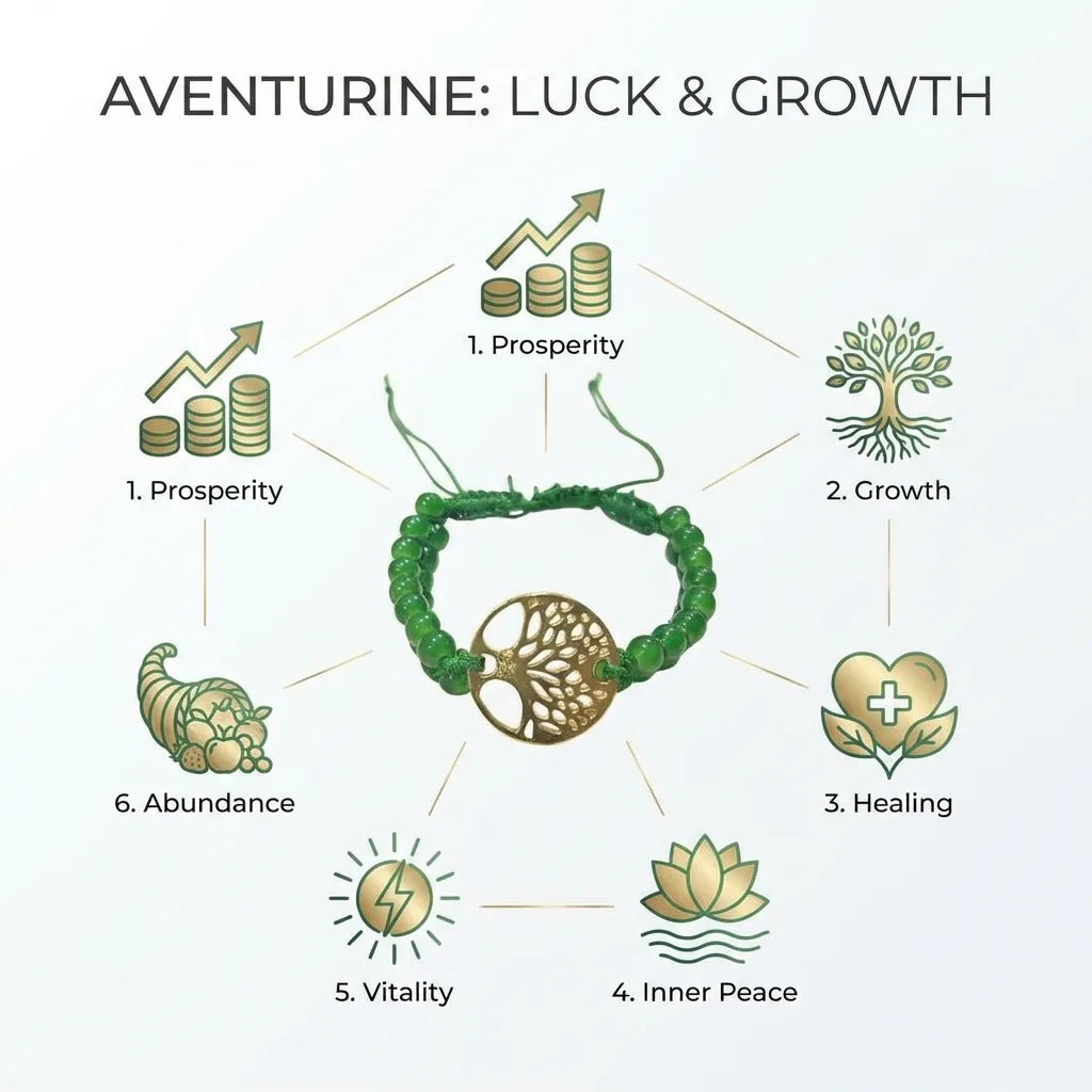 Green Aventurine, often called the "Stone of Opportunity" is known for attracting luck, prosperity, and positive energy. Paired with the Tree of Life, this bracelet encourages personal growth, emotional healing, and success.