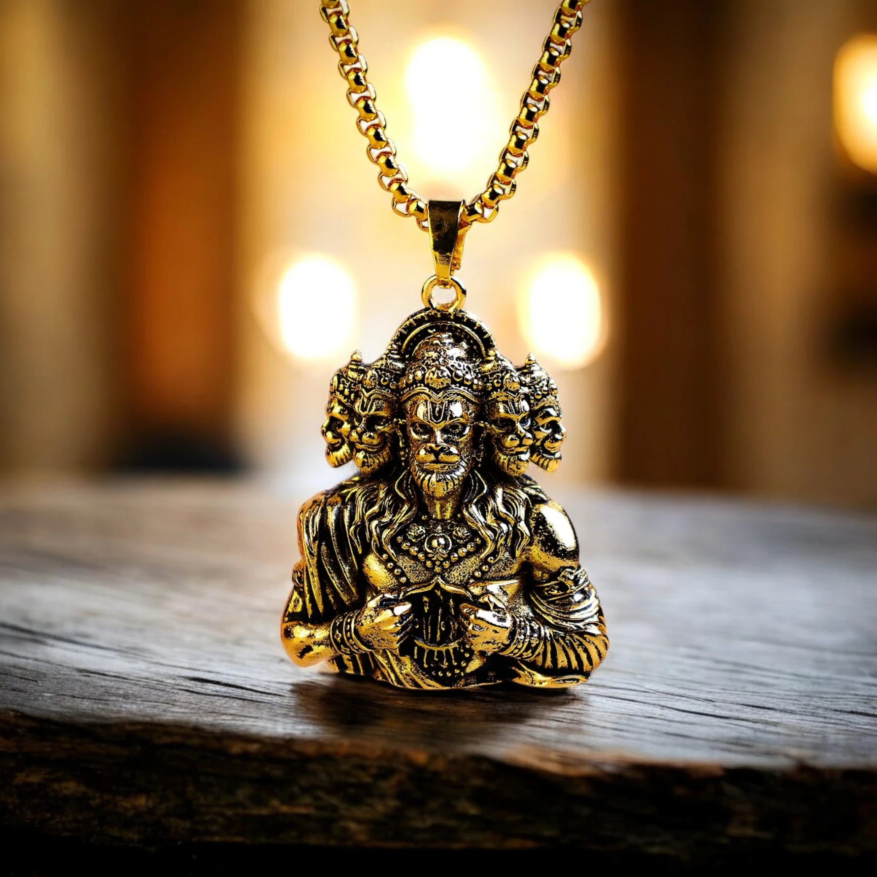 A powerful and meaningful necklace designed to keep the strength, protection, and blessings of Lord Hanuman close to you. The pendant features Panchroop Hanuman Ji, representing courage, devotion, discipline, and victory over obstacles. Wear it daily as a reminder of inner strength and unwavering faith.